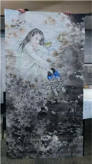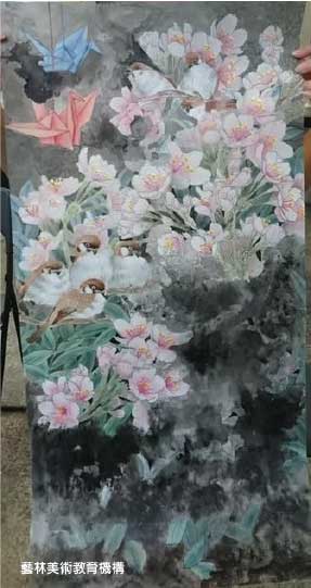 美展專班,針對學生美術作品一對一討論構圖及進度。