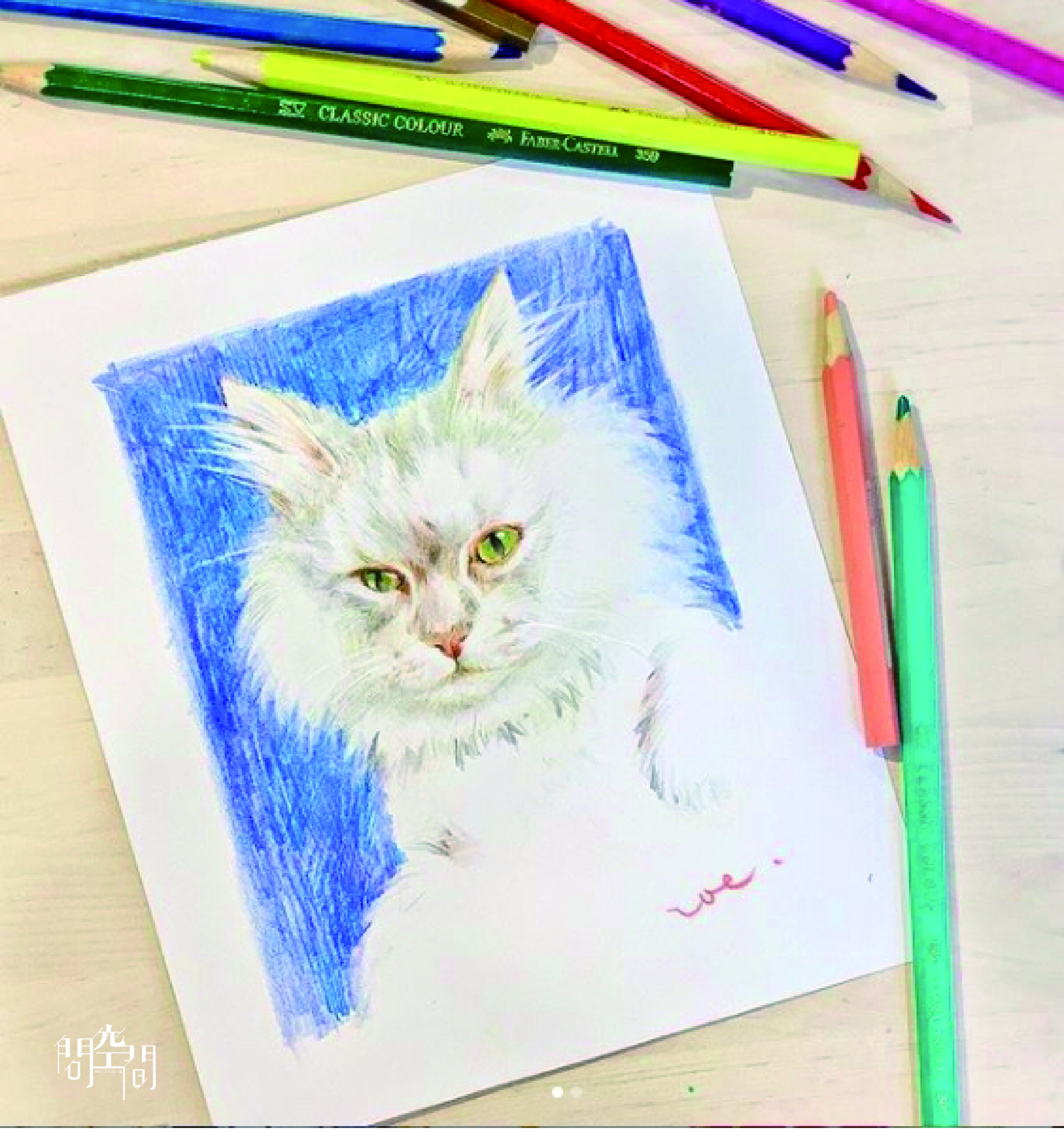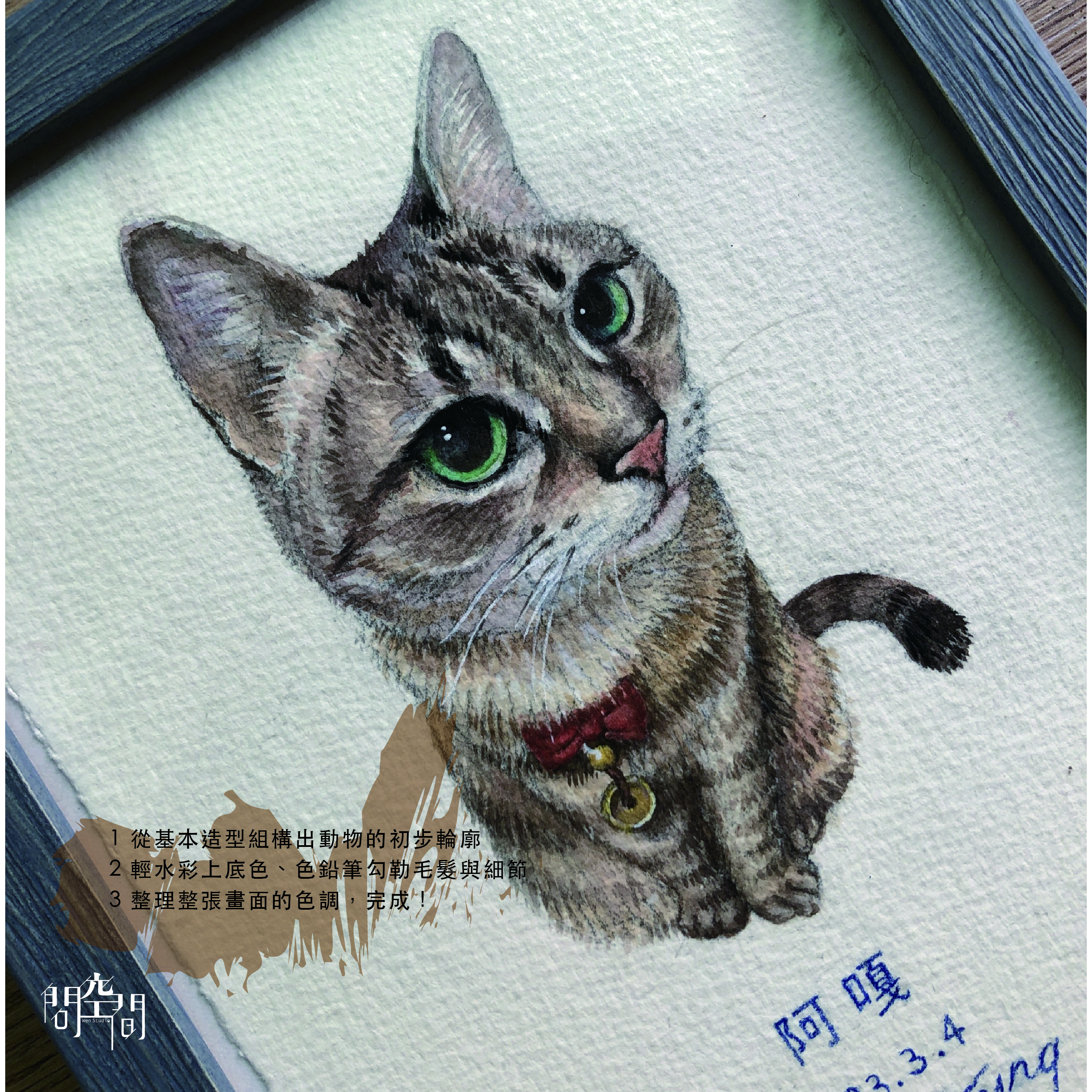 Step2 輕水彩上底色、色鉛筆勾勒毛髮與細節