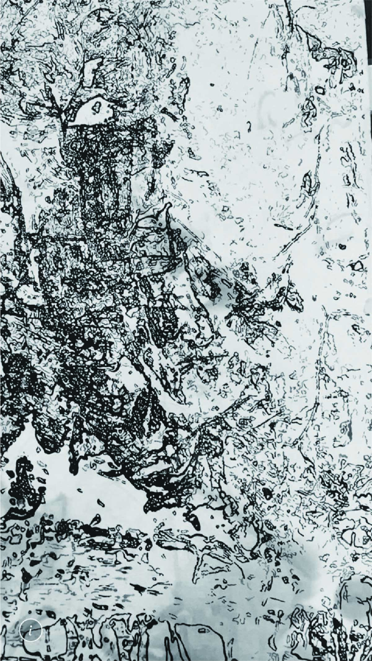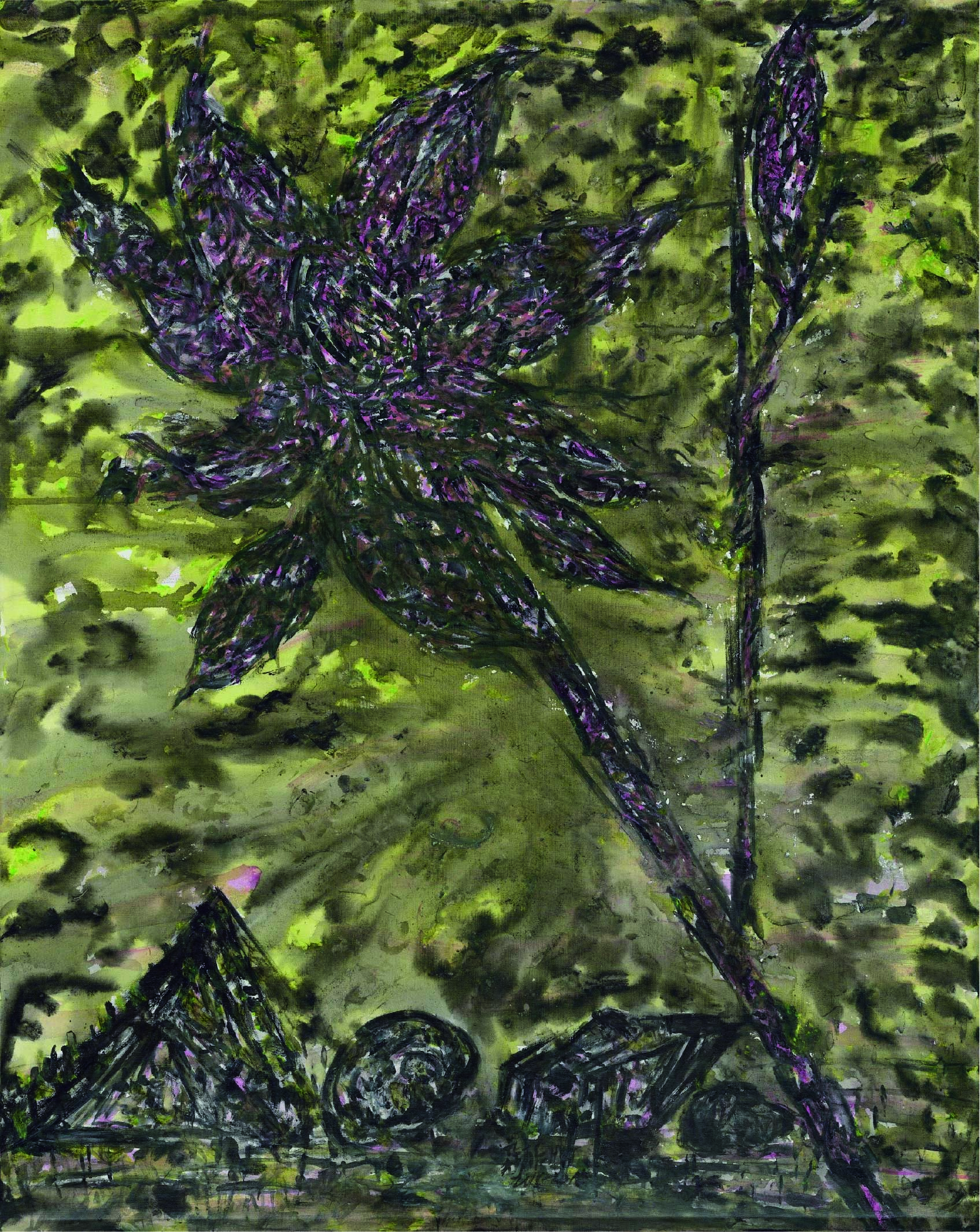 許雨仁先生甫在2024年由北美館策劃《溺浮沉洄:許雨仁回顧展》,其創作面貌風格早有多重論述,針對「驚蟄」策展主題意象,此次擇其與土地及植物關懷畫作31件,展出《粗筆系列》(Rough-brush Ink Plants Series,2007-2014,水墨、紙)、《沒形系列》(Shapeless Series,複合媒材、壓克力片、炭、墨、膠、塑膠布,2015-2021)、《豆腐板書畫系列》(Color Ink Painting onTofu Pallet Series,壓克力、墨,2015-2018)、《彩筆系列》(Color Painting Series,2016,複合媒材、畫布)等四個系列作品。見諸他熱衷倘佯自然之間,對植物成長生機追尋亦多有著墨、終其一生對生長土地周遭環境的關懷反映。藝術家從作品反映問題,透過多重媒材包含水墨、紙、複合媒材、畫布及筆墨表現的新創,具有當代創新觀點,其中「細筆斷續線」為其獨特風格表徵,畫面大量留白更顯示其對傳統水墨中留白布局的體悟體現,對比張力下,風格令人過目難忘。