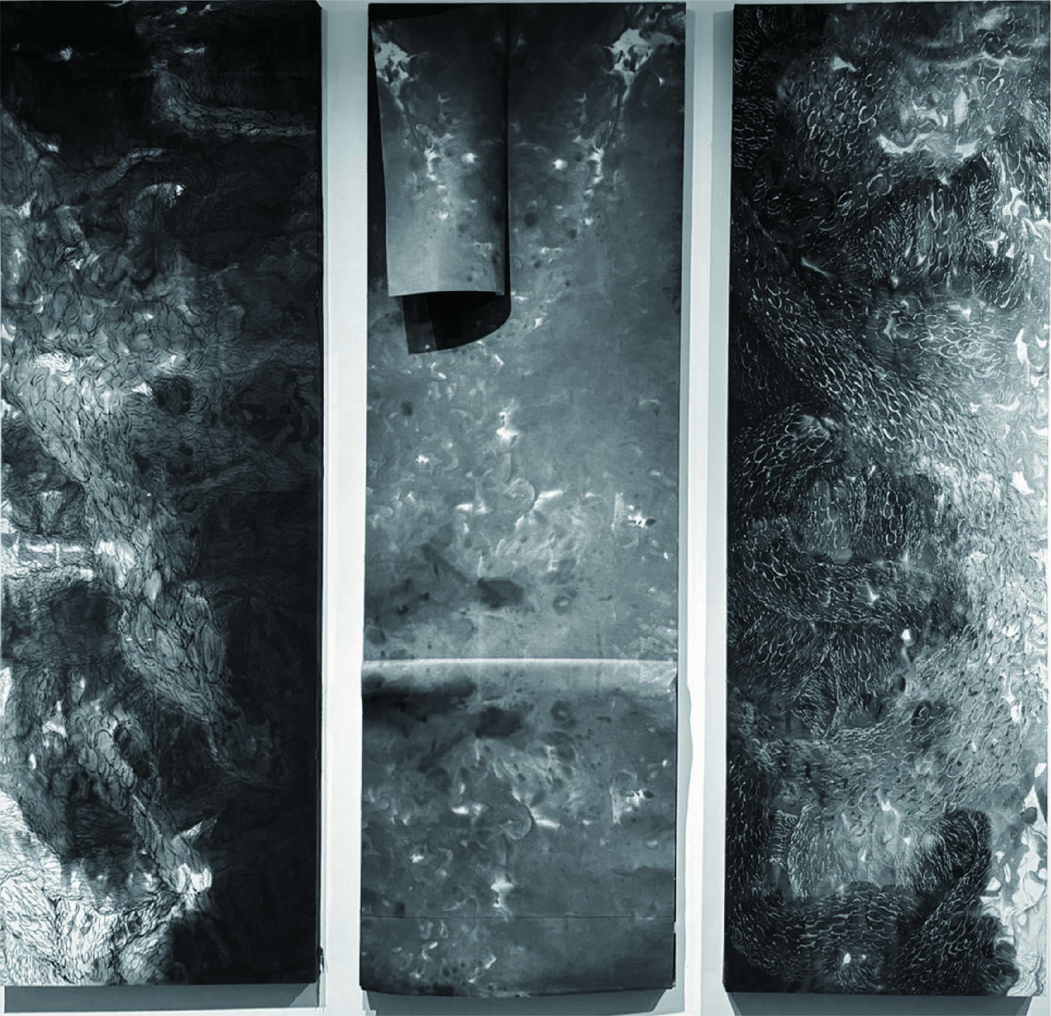 趙茂東去傳統謝赫之六法,更具構成主義概念中的去地域性、故事性、寫實 性內容之表現,當然所使用之色彩業已只剩下黑白,與隨類賦彩之承襲無關,但 其創作媒材仍保有東方古代所持素樸物質觀,不改初衷堅持,如珍珠般的雨滴露 水都是其表現的靈感意念,應許著對水墨藝術積極創造的未來,因而視水為創作 基本組成元素,水更是中國傳統五行觀之一,故以水及墨色相應而生創造流動的 形象。從事水墨時放下心中固著己見,以全然開放心靈,關照事物不同層面。他 更保持了傳統所採用的煤煙、松煙、明膠等墨,加上一方無規則交叉排列的纖維 紙作為書寫載體,歡愉水及墨跡的一片美好,以一生的付出,隨著濃淡渲染變化 進行組構及造境。